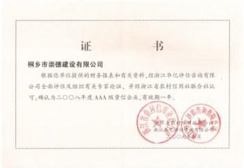 二00八年度企業(yè)資信等級(jí)AAA級(jí)