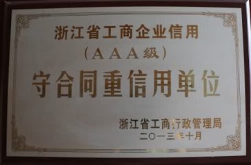 浙江省工商企業(yè)信用AAA級(jí)守合同重信用單位